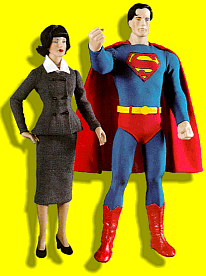 Above right: panel art by Wayne Boring (1959). Left :Limited edition 1997collectors dolls of Lois (18" tall) and Superman (20" tall) designed by Robert Tonner. |